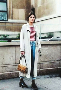 现在的天气,条纹可以作为内搭,外面搭配一件风衣就可以美美地出门了。