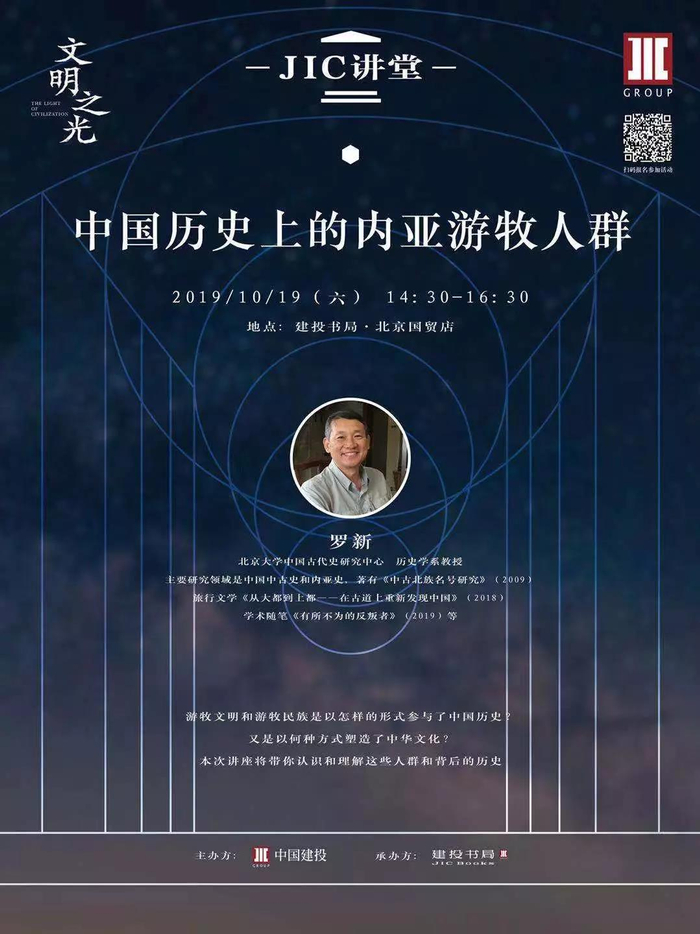 文明由人塑造和传承,在互动与对话中发展与融合。作为中国历史上不可忽视的一部分,游牧文明和游牧民族是以怎样的形式参与了中国历史,又是以何种方式塑造了中华文化?10月19日,“中华文明的源与流”第二讲,我们邀请罗新教授亲临建投书局·北京国贸店,为大家讲述游牧文明与中国历史间千丝万缕的联系。