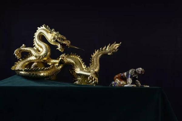 蔡水况作品,《叶公好龙》(2001年获中国工艺美术品银奖)