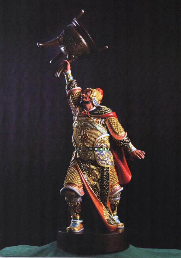 脱胎金彩漆线雕西楚霸王(正面图) ,蔡水况,1995年