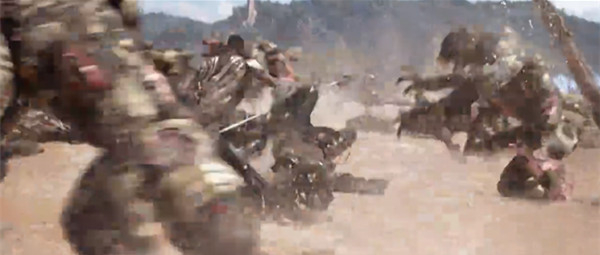 笔者随便打开《复联3》,截了一张打斗图。很糊
