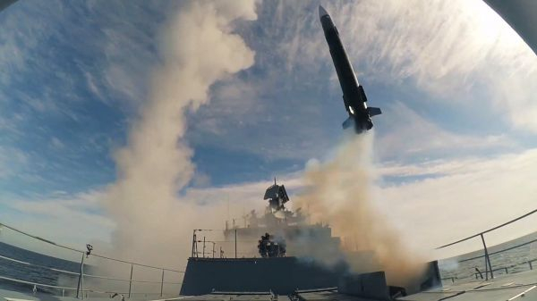 资料图片:俄军舰载“棱堡”远程防空系统发射导弹瞬间。(图片来源于网络)