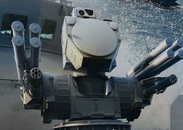 舰载版“铠甲-M”防空系统于2015年首次亮相。它是在陆地版“铠甲-S”防空系统的基础上研发的,火炮部分做了改动——弃用双管30毫米舰炮,代之以2门6管30毫米AO-18KD高轨自动舰炮。后者的瞄准射程达4000米,能准确命中高度在3000米以内的目标,一分钟能向敌方发射5000发炮弹“弹幕”。