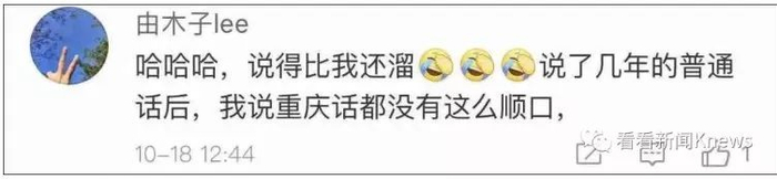 “很多人问我,潇潇,为撒子你滴从庆(重庆)话那咯子好哇?我跟你们梭哈,我到中国过唠俩年,我才晓得我梭滴似从庆话,而不似普通话。我以为全国都梭滴似从庆话。”