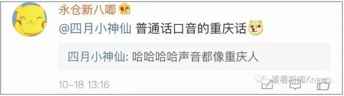 她认识的朋友们不少都说重庆话,所以她跟着模仿学习,也学的是重庆话。