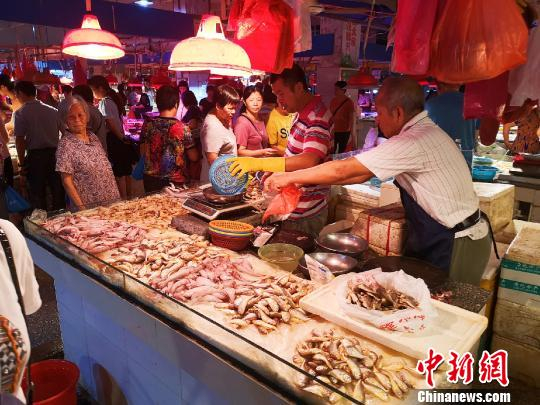 海鲜档主为顾客介绍黄皮头和仲仔 李晓春 摄