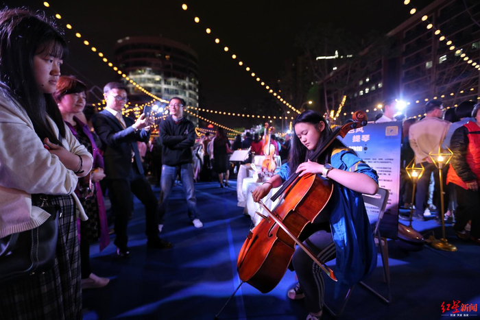 紧接着,黑胶广场上开展了一场经典音乐会,精选西方古典音乐和中国红色经典歌曲现场演奏,为观众们奉上了一台高水平的音乐表演。