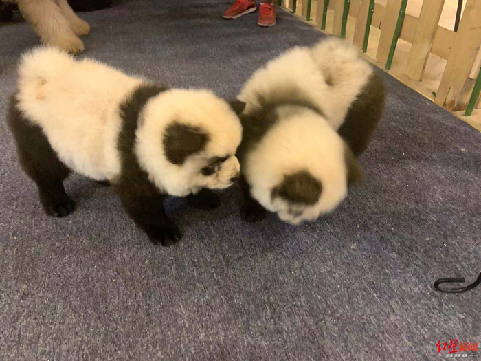 近日,成都一家位于橡树林东路的宠物咖啡馆开设新业务:可以为你的爱犬染色,染成熊猫的样子,每只宠物收费1500元。在店内,有6只已经成功“变身”的松狮犬,店里的顾客更喜欢叫他们“熊猫狗狗”。