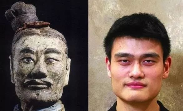 其中一尊兵马俑的面部轮廓和五官像极了体育明星姚明