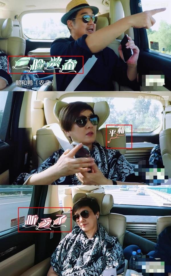 比如节目一开始,张国立、邓婕夫妇去往居住地,一路上张国立掩不住的兴奋,嚷嚷着“鹅和鸭到了”,邓婕“哦”了一声。此时节目给张国立配的花字是“一脸兴奋”,辅以一个轻快的音效,给邓婕的花字则是“平和”。