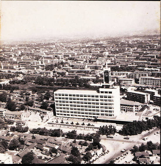 上世纪80年代航拍的合肥大钟楼,是当时合肥最高的建筑