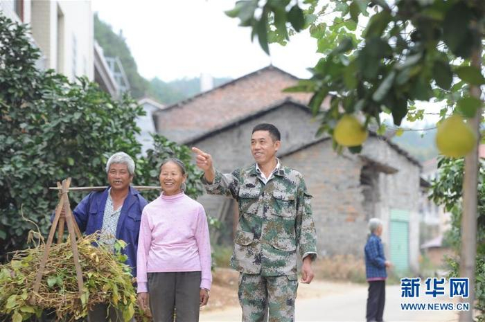 10月16日,皮海云(前右一)在江西新干桃溪乡连坑村小组与村民交流 新华社记者 冯为民 摄
