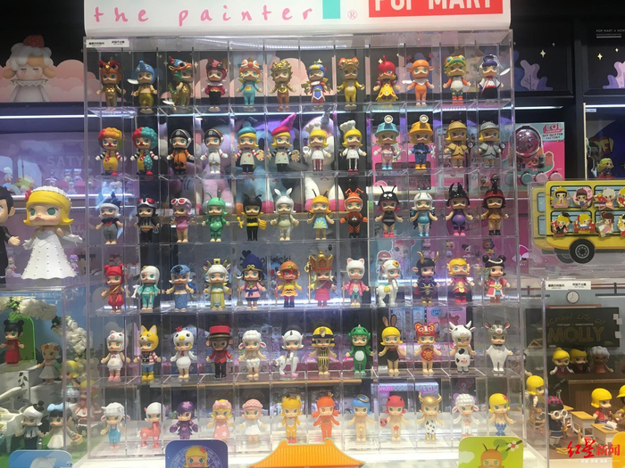 盲盒有多火?据泡泡玛特(一家生产售卖盲盒的潮流玩具公司)披露的数据,仅2018年双11当天,泡泡玛特天猫旗舰店就卖出了超过2700万元的盲盒;截止发稿日,该旗舰店一款售价59元的盲盒月销超10万个。盲盒的玩法、潮玩公司流水线的量产及繁荣的二手市场,共同造就了今天的Molly。