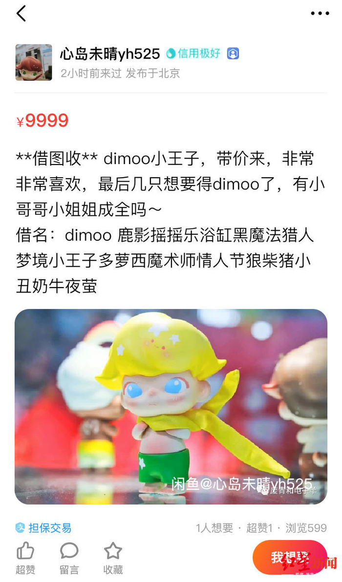 还有不少“娃友”在闲鱼上高价求购指定款盲盒