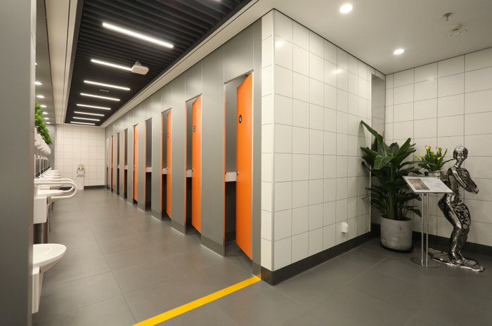 而针对卫生间内容易产生异味的难题,首都机场在改造过程中打出了一套组合拳:在卫生间内增设地漏,方便使用地刮和玻璃刮等工具清理;对地面、台面水渍进行清理,减少抹布的使用,从源头减少细菌、异味的产生;针对易产生异味的重点区域,如男卫小便池下方等位置,采用具备分解异味功能的新型除臭地砖,利用光触媒技术有效抑制异味扩散;对于厕位间,每个厕位隔断板均做通顶处理,有效防止异味流通。