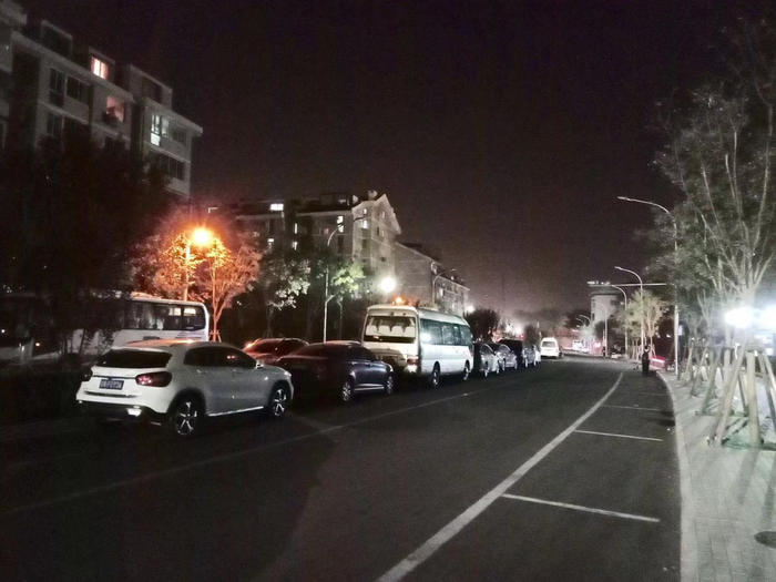 20日晚7时,记者驱车来到金鱼池西街。一驶入该路段,就有点儿蒙圈:车行道和中央绿化隔离带上,居然停放着四溜儿私家车,道路行车秩序非常混乱。
