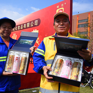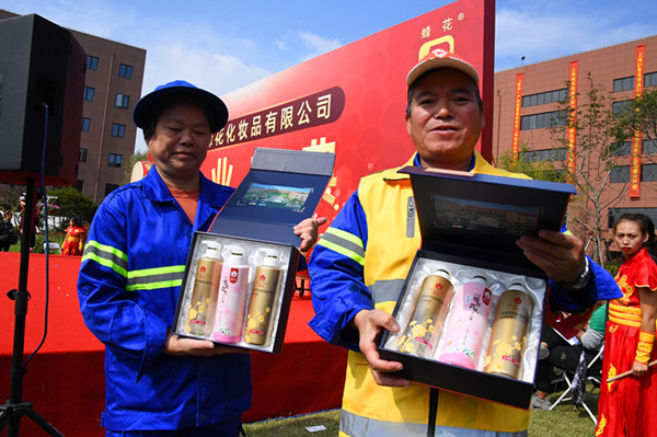 图说:上海蜂花化妆品有限公司开业,智能工厂投产的第一批产品全部赠送给环卫工人、垃圾分类志愿者等城市“美容师”。闵杰峰 供图