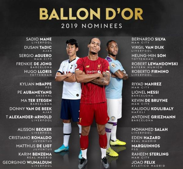 继欧足联赛季最佳、FIFA年度男运动员之后,足球世界最重要的个人奖项——2019金球奖,终于在22日凌晨公布了最终入围的30人名单。