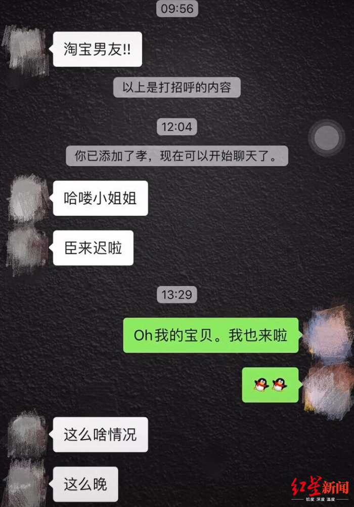 一个名叫“辉辉”的男朋友告诉红星新闻记者,自己是从网上看到这样的事情,然后自己去平台找的店铺老板,“就是无聊,打发时间,还挣点外快,店家分一半钱给我,其实也挣不了多少。”