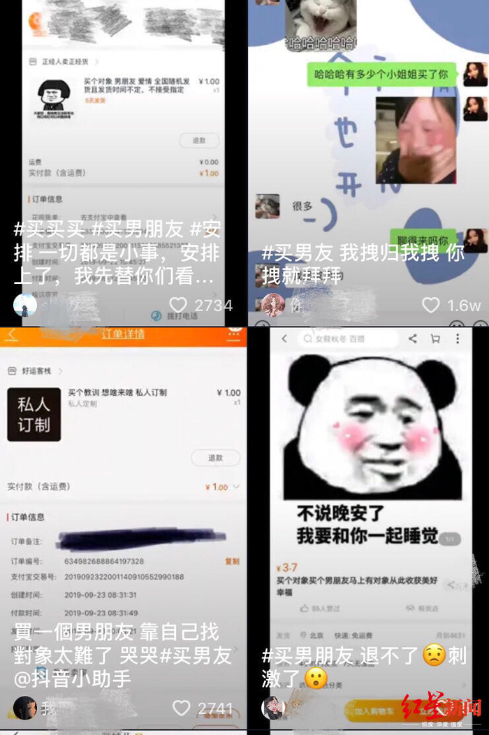 除了小K之外,还有众多网友晒出了自己的购买、聊天视频,“男友”价格不一,但多数都是几元。