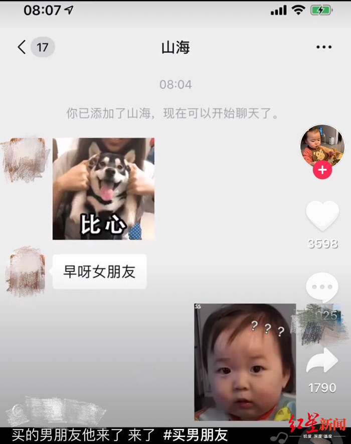 近日,多位网友发了自己与“男友”的聊天记录视频在网上后,迅速引来围观,其内容均为花钱买“男友”。