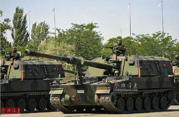 土耳其是韩国K-9火炮的第一个海外用户,双方于2004年签订了价值10亿美元的军售合同,土耳其从三星集团获得了K-9的生产许可证,其国产型号为T-155“佛提纳”,共生产了350辆。图为土耳其陆军配备的T-155“佛提纳”自行火炮。