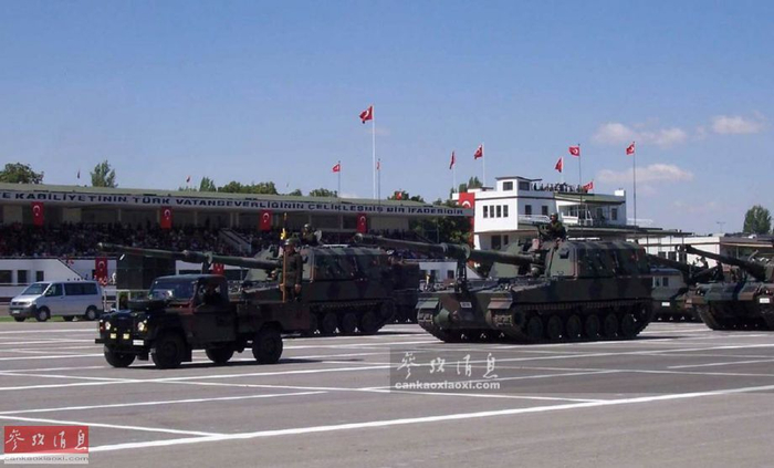 图为土耳其阅兵式上的T-155自行火炮方队。