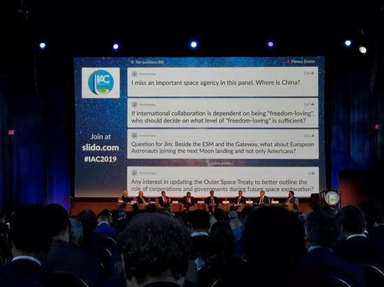 日前,在第70届国际宇航大会开幕当天的第一场全会活动上,1000多名现场听众通过手机投票将这一提问置顶了。出现这个场面的原因是,大会的官方议程上预定在华盛顿会议中心发表演讲的中国国家航天局副局长吴艳华没有出现。