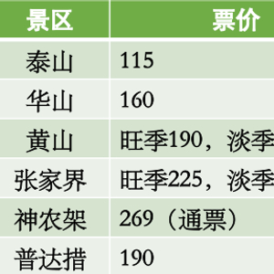部分国内5A级景区门票价格 内容由作者提供 康宁 制图