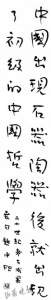 观点:赵承楷是理论与创作兼善的学者型书法家,在创作中,他不偏废,不极端,走的是中和之路,倡扬的是中正大美,其书法内容多是自作文字,往往能在平凡中道出一些不平凡的事理,探幽发微,引人深思。在着力于书法创作、书法理论、书法教育的同时,他还多年坚持细读中国文化史,在历史、考古、文学、文字学、艺术、美学、哲学上尤下工夫,出版有《艺术思考》《史前墓葬》《木铎声声》等书籍。