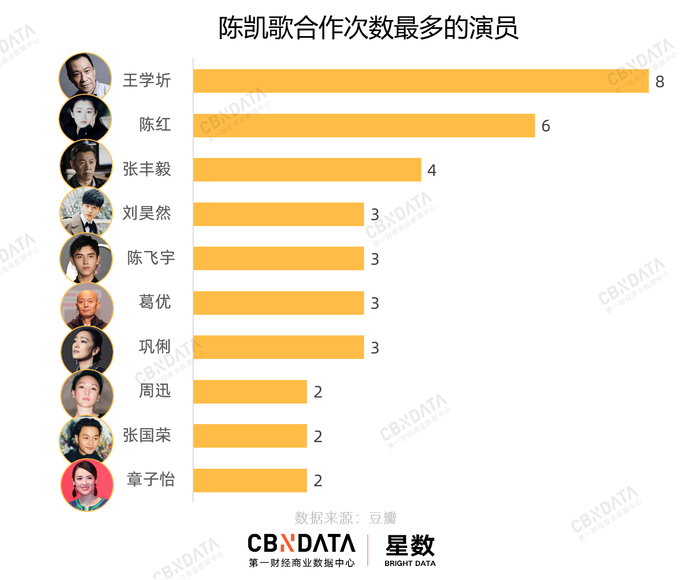 台上的指教,是台下三十多年磨炼出来的经验。这三十年来,陈凯歌确实成就了很多演员。受过他最多指导的演员,毋庸置疑一定是与他合作次数最多的,至此,我们从这些演员里选取了10位。