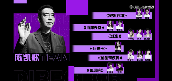 接下去,陈凯歌还将有一部新戏《尘埃里开花》,看看主演名单,刘昊然、陈飞宇、文淇和张雪迎,一溜的95后小生小花。由年轻人挑起电影的大梁,是接近70岁的陈凯歌又一个非常大胆的尝试。