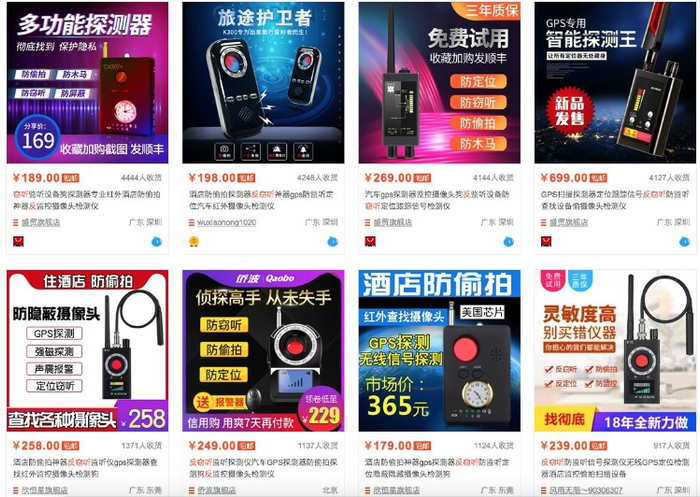 除了学习掌握防偷拍知识,形形色色的窃密设备检测仪近年来在消费者中也颇为走俏,敏感的商家早已注意到这个市场。记者以“反窃听”、“防偷拍”等为关键词在购物网站进行搜索,马上出现一系列以“反xx”为核心目标的检测仪器,且均打出“隐私保护神”、“找就找彻底”、“让泄密无处可藏”等宣传语。