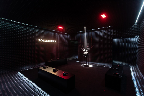 惊讶不已的宾客们漫步在一个配备着特殊照明的建筑奇境中,这个是一个具备无回音效果的三问报时空间,以极其震撼的立体声效提供了令人难忘的钟表体验:一款绝无仅有的Excalibur Spider Unique Series腕表在此展现其生命的律动。Excalibur Spider Unique Series腕表是昂扬激情的化身,也是体现Roger Dubuis罗杰杜彼双重性创作的经典时计,不仅搭载备受喜爱且精湛独特的复杂功能,更采用超现代的SMC片状模塑碳纤维材质演绎出全新表款,成为品牌作为钟表界“持续创新者”的又一典范之作。