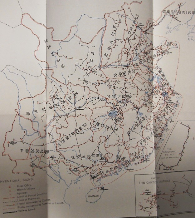 1904年中国邮政系统总图;来源:中国海关总税务司署编《中国海关十年报告》,上海:海关总税务司署印刷,1906年。