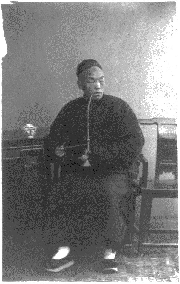 1870年代初的一个正在吸水烟的上海买办,美国国会图书馆藏,编号2011660145。