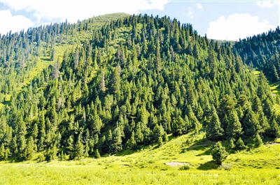 单一树种林分易遭各种灾害袭击。图为小蠹虫危害的云杉林地 王继山摄