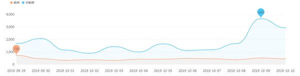 监测期内,共收到网络购物相关消费维权信息681048条,其中负面信息191457条。从日趋势图看,网络购物的负面信息呈现出两头高、中间低的走势,且在10月6日后呈现出递增趋势(图9)。9月29日—9月30日,因“消费者质疑拼多多利用十一国庆假期做虚假活动”,出现网络购物舆情高峰;10月9日,因“假冒阿迪达斯亿元大案侦破”事件,有关网购售假产业链问题达到舆情高峰。