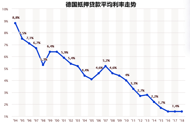 房地产抵押贷款利率与政府长期债券的息票利率息息相关,德国德昇地产有限公司(Sun Immobilien GmbH)总经理孙杨在第一财经记者采访时表示,近几个月以来,在美国下调利率、欧洲央行继续执行货币宽松政策、全球经济预期低迷等大背景下,德国房贷利率也在不断创造历史新低。