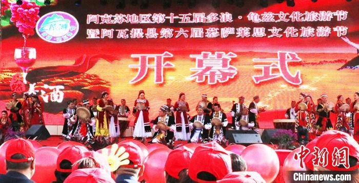中新网新疆阿瓦提10月25日电(记者 王小军)民间老艺人现场弹唱刀郎木卡姆、万人齐跳刀郎麦西来甫……25日,新疆阿瓦提县精彩的民俗表演,拉开了第六届慕萨莱思文化旅游节的序幕。