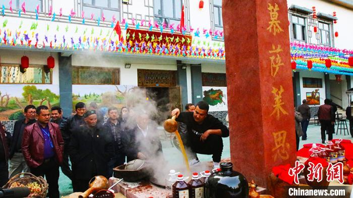 夏热扎提·吾斯曼现场展示慕萨莱思酿造工艺。 王小军 摄