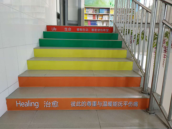 王薇的心理咨询室位于教学楼三楼,是同学们上课的必经之路,现在,她把通向咨询室的阶梯刷成了彩虹色,希望营造一种多元、包容、友善的心育环境。