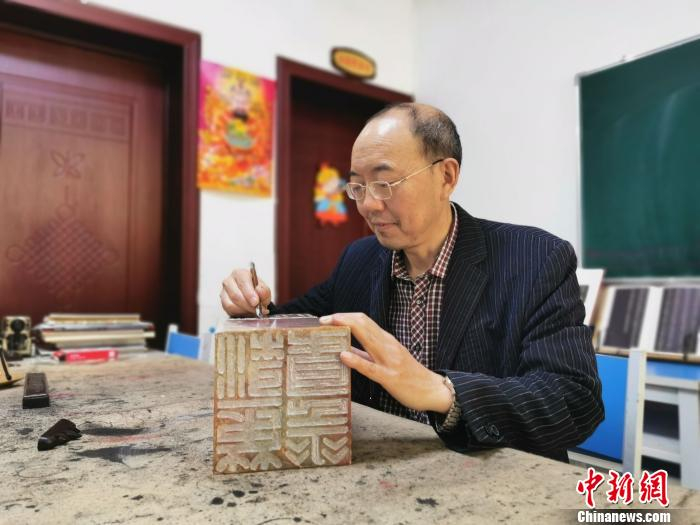 陈新恒正在对白起渠巨印进行最后创作 胡传林 摄