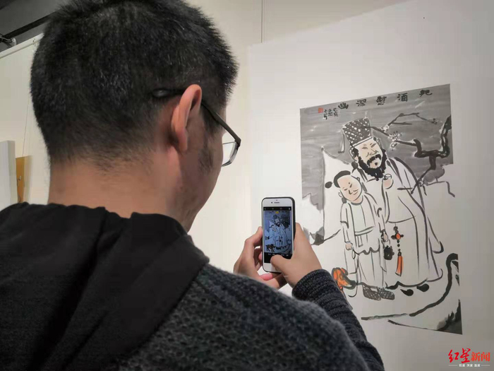 参观者拿出手机拍下自己喜欢的“苏东坡”