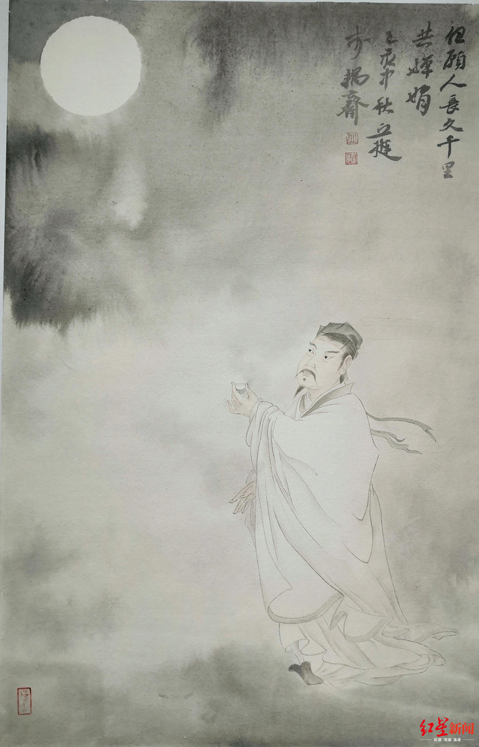 红星新闻记者发现,在此次展出的多幅作品中,东坡都身在月下。