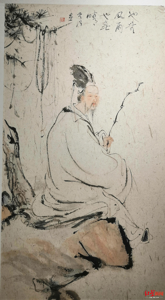 相比于书法篆刻作品,展出的46件风格和人物造型迥异的东坡画像尤为引人注目,这46件作品中,是国内46位水墨画才俊们应邀为东坡造像绘画创作贡献出的画中的情思,他们各显才情,把东坡形象塑造得尤其洗落凡尘、逸兴十足。