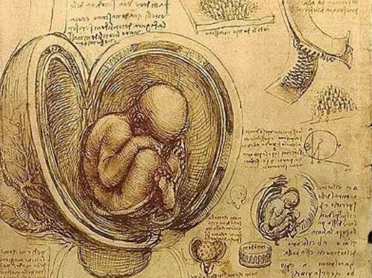 再翻两页,你可能会看到世界上第一幅有关子宫内的胎儿的插画。。。