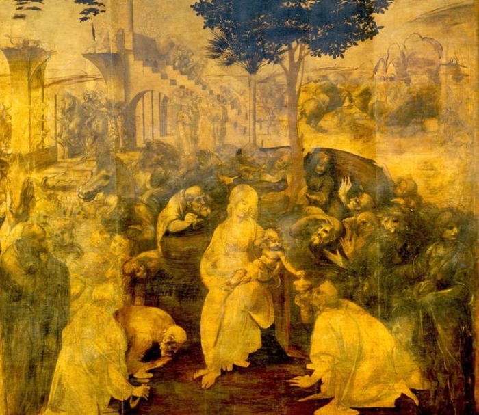 据说《 博士来拜 》就是因为达·芬奇三心二意,加上太完美主义,一拖再拖最后到离世都没有完成的一幅作品之一。。。