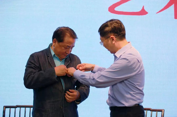 讲座开始之前,姜昆用一段生活中提炼的小品开场,瞬间使同学们感受到语言艺术的魅力并拉近了和同学们的距离,南通大学党委常委、宣传部部长吉明明给姜昆颁发子美大讲堂纪念杯,南通大学党委常委、副校长蒋乃华为姜昆颁发了南通大学兼职教授聘书,并为姜昆佩戴上南通大学校徽。