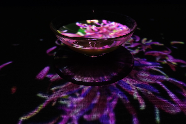而在展览的最后,一间独特的茶屋又一次让人联想到日本的传统。在这里点一杯茶,花朵会慢慢地在茶面上绽开,移开茶杯,花朵则会逐渐凋谢,并且在新的地方再次生长。
